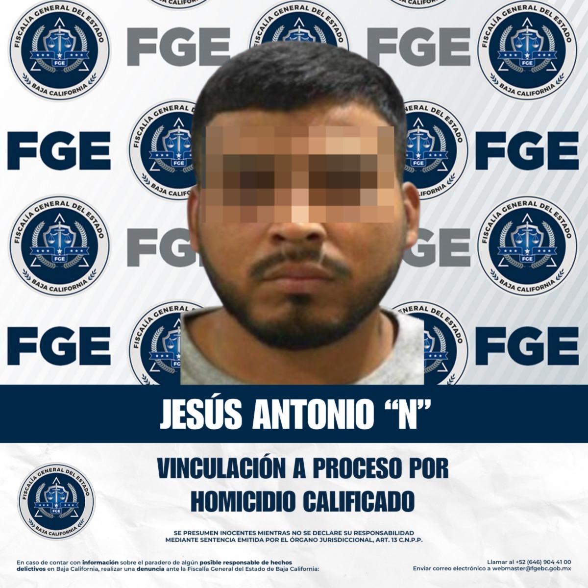 Tijuana,Baja California, 12 de febrero de 2026.-Un juez vinculó a proceso a Jesús Antonio “N”, señalado por la Fiscalía General del Estado como presunto responsable de un homicidio calificado ocurrido en el fraccionamiento Natura de Tijuana.