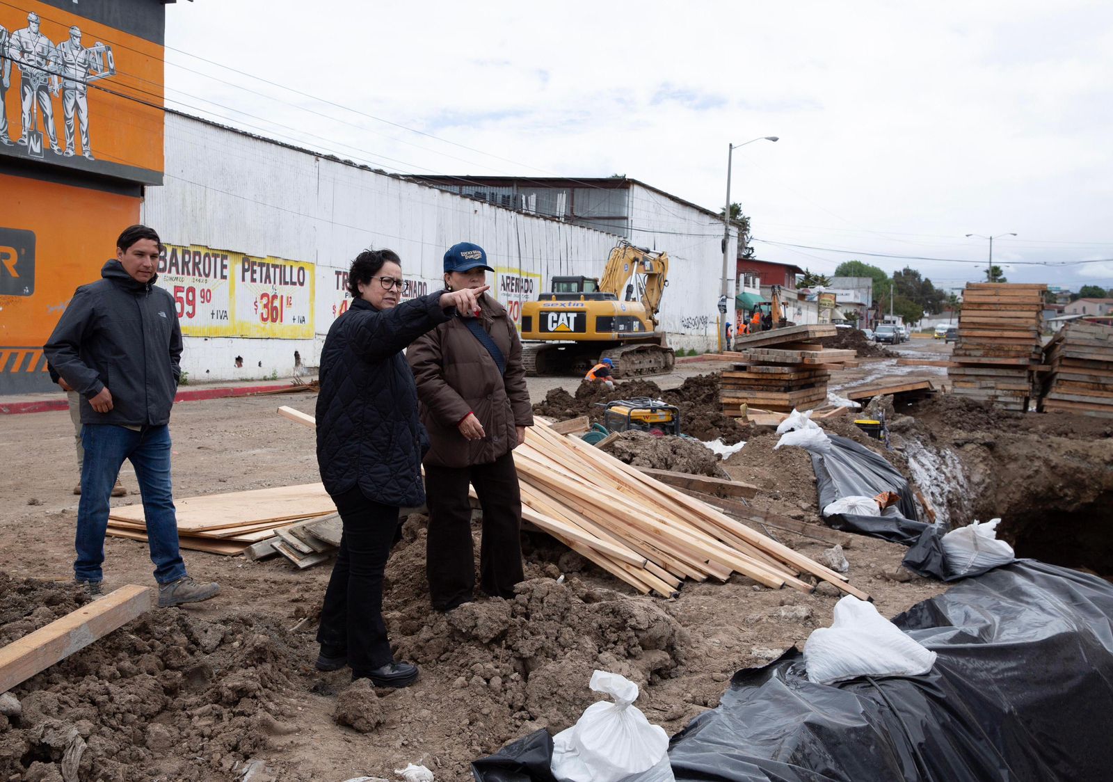 Rosarito, Baja California, 16 de febrero de 2026.- La presidenta municipal de Playas de Rosarito, Rocío Adame, encabezó este lunes una jornada de supervisión en los trabajos de rehabilitación del socavón ubicado en el bulevar Hisense. Durante el recorrido, se confirmó que la obra, fundamental para la movilidad del sector, presenta actualmente un avance del 45% en su ejecución técnica.