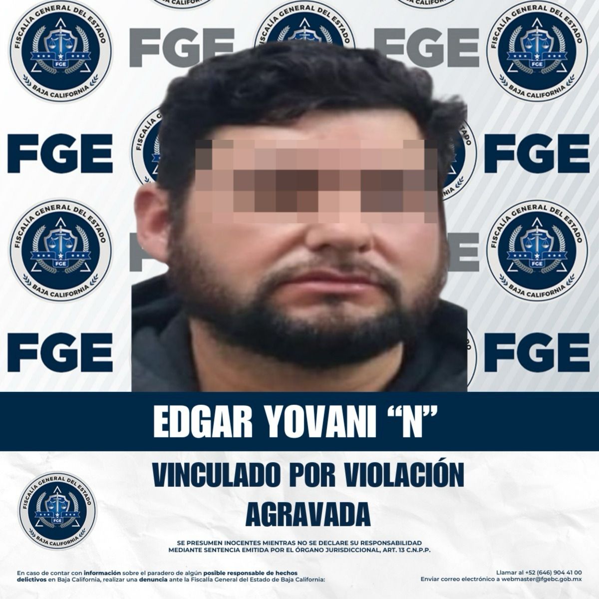 Tecate, Baja California, 17 de febrero de 2026.– La Fiscalía Especializada en Delitos Contra la Mujer por Razón de Género, a través de su Unidad de Investigación de Delitos contra la Libertad Sexual y la Familia en Tecate, informó la vinculación a proceso de Edgar Yovani “N”, a quien se le atribuye la presunta comisión de delitos en agravio de una menor.