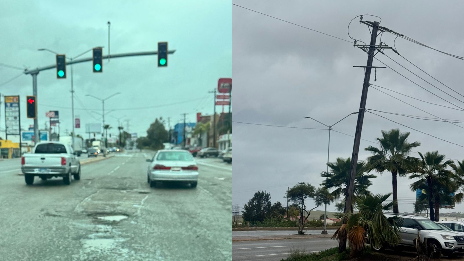 Playas de Rosarito, 18 de febrero de 2026.—Tras las lluvias y los intensos vientos registrados durante la madrugada del miércoles, diversas afectaciones comenzaron a notarse en distintos puntos de la ciudad. Sobre la avenida Rosarito–Tijuana se registraron decenas de baches profundos que hoy complican el tránsito diario en esta importante vialidad.