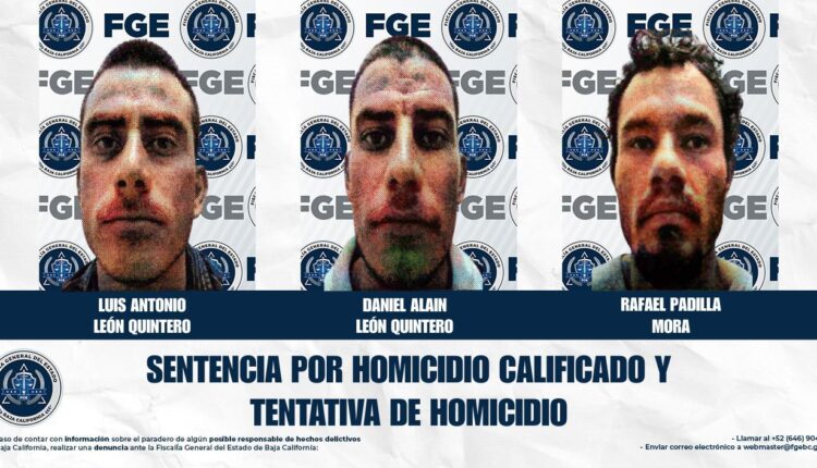 Tijuana, Baja California, 21 de febrero de 2026.– Un juez de control dictó sentencia condenatoria de 50 años de prisión contra tres individuos por homicidio calificado con premeditación, ventaja y alevosía, así como por homicidio calificado en grado de tentativa, tras hechos ocurridos en 2014 en la colonia Obrera, Tercera Sección, en Tijuana.