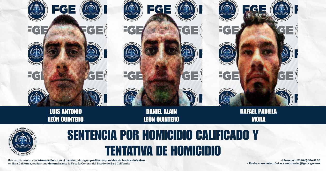 La Fiscalía Regional de Tijuana informó que, conforme a la investigación, Luis Antonio León Quintero, alias “El Güero”; Daniel Alain León Quintero, alias “El Güerito”; y Rafael Padilla Mora, alias “La Chilindrina”, llegaron armados a un domicilio junto con otras personas. Después de derribar la puerta y sin mediar palabra, realizaron múltiples disparos con armas de fuego, privando de la vida a dos personas y dejando a otra gravemente lesionada.