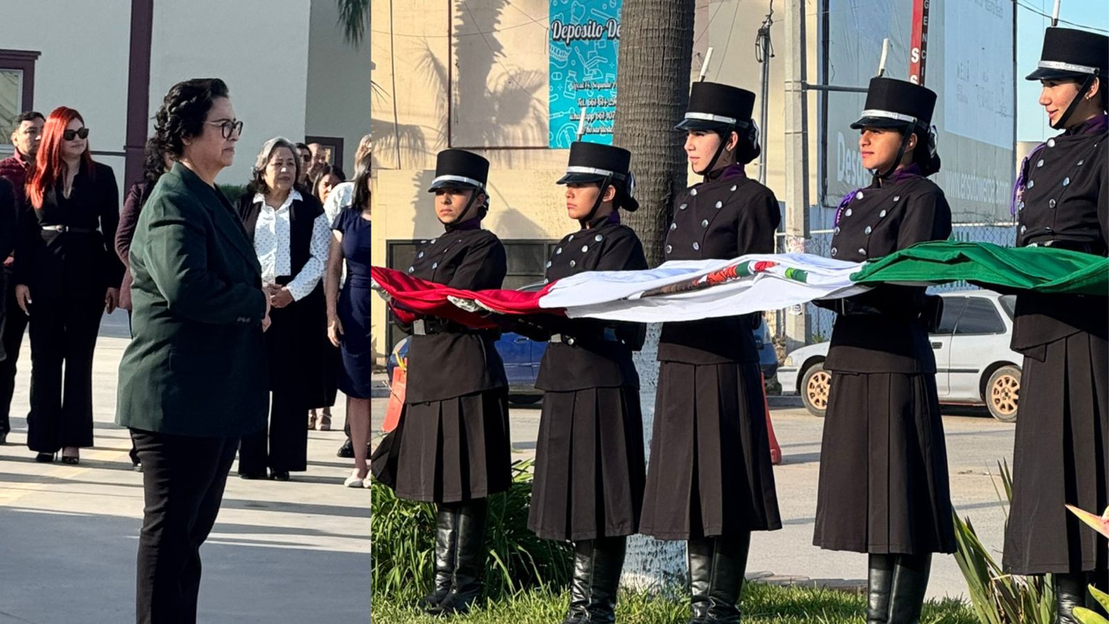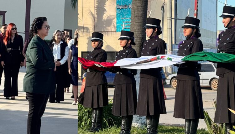 Playas de Rosarito, 24 de febrero de 2026.– En el marco del Día de la Bandera, la presidenta municipal de Playas de Rosarito, Rocío Adame, encabezó la ceremonia de izamiento del lábaro patrio y recordó que esta fecha fue estipulada en 1940 por el entonces presidente Lázaro Cárdenas.