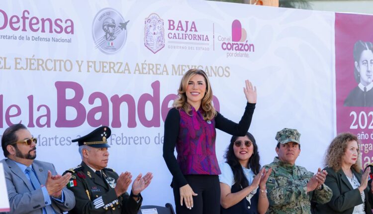 Baja California, 24 de febrero de 2026.– La gobernadora Marina del Pilar Avila Olmeda encabezó en Mexicali la conmemoración del Día de la Bandera, realizada en el cuartel del 23 Regimiento de Caballería Motorizada.