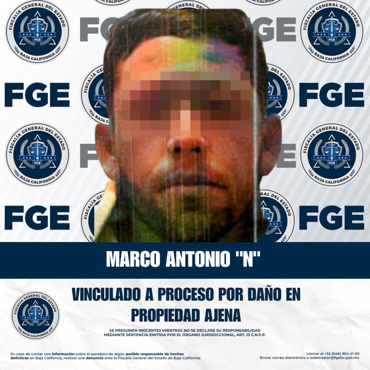 Tijuana, Baja California, 24 de febrero de 2026.- La Fiscalía Regional de Tijuana, a través de la Unidad de Investigación con Detenido, obtuvo la vinculación a proceso y la medida de prisión preventiva justificada en contra de Marco Antonio “N”. Al imputado se le señala por su presunta responsabilidad en los delitos de daño en propiedad ajena por culpa y daño en propiedad ajena doloso, tras incidentes viales registrados el pasado 14 de febrero en la colonia El Florido 4ta Sección.