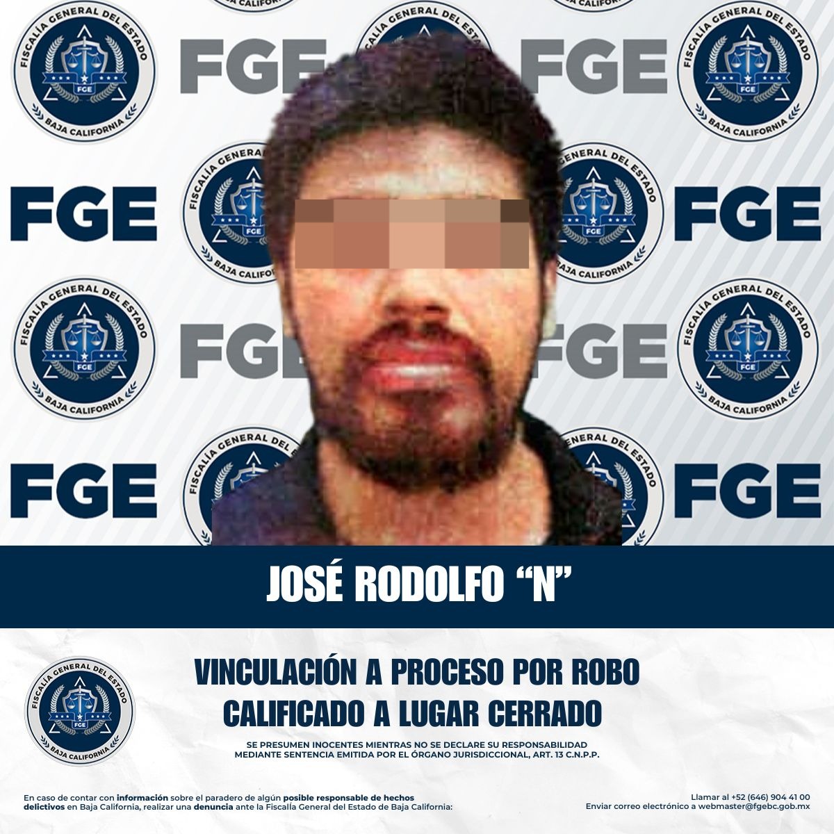 Tijuana, Baja California, 25 de febrero de 2026.- La Fiscalía Regional de Tijuana logró la vinculación a proceso y la medida cautelar de prisión preventiva en contra de José Rodolfo “N”. Al imputado se le señala por su presunta responsabilidad en el delito de robo calificado a lugar cerrado, tras un incidente ocurrido en un establecimiento comercial de la Zona Río.