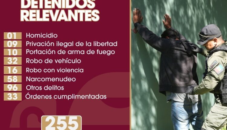Tijuana, Baja California, 23 de marzo de 2026.- La Secretaría de Seguridad y Protección Ciudadana Municipal reportó la detención de 255 personas vinculadas a diversos delitos durante la semana del 16 al 22 de marzo en distintas zonas de Tijuana. Los operativos realizados por la corporación local derivaron en la captura de individuos señalados por delitos de alto impacto, incluyendo homicidio y privación de la libertad, como parte de las estrategias de vigilancia urbana.