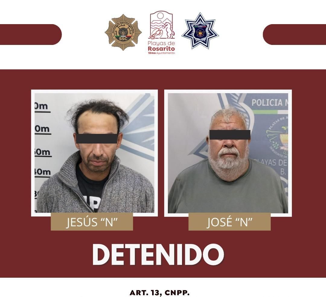 Playas de Rosarito, Baja California, 24 de marzo de 2026.- Elementos de la Policía Municipal de Playas de Rosarito detuvieron a dos hombres en posesión de tres armas de fuego tras un operativo en la colonia Plan Libertador. La intervención ocurrió luego de que un ciudadano denunciara haber sido amenazado directamente con una pistola mientras transitaba por la calle Adolfo López Mateos, lo que derivó en una persecución y captura inmediata.