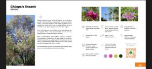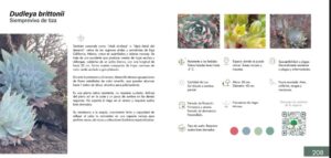 La Paleta Vegetal incluye actualmente 89 especies, divididas en árboles, arbustos, flores y suculentas. Entre las plantas destacadas se encuentran el Ciprés de Tecate —especie única del área de Cuchumá—, el Mimbre, la Salvia Blanca y el Romero. El documento ofrece detalles técnicos sobre el consumo de agua, necesidades de sol y propiedades medicinales, respetando el conocimiento ancestral de los pueblos originarios.