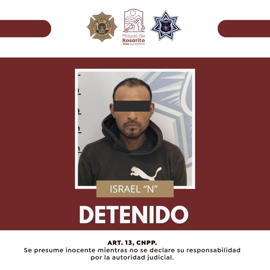 Playas de Rosarito, Baja California, 30 de marzo de 2026.- Elementos de la Policía Municipal de Playas de Rosarito arrestaron a un hombre de 38 años que amenazaba a transeúntes con un hacha en las inmediaciones de la colonia Lucio Blanco. El reporte oficial indica que el sujeto, identificado como Israel “N”, también portaba dosis de una sustancia con características similares a la droga conocida como cristal al momento de su detención.