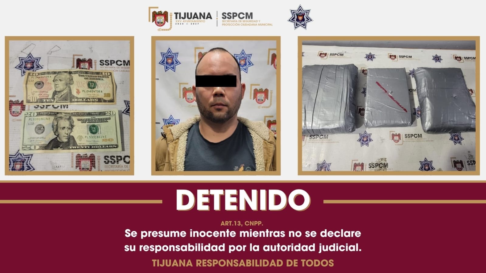 Tijuana, Baja California, 8 de abril de 2026.- La Secretaría de Seguridad y Protección Ciudadana Municipal informó sobre la captura de un hombre de nacionalidad estadounidense, quien fue sorprendido transportando 4.34 kilogramos de presunta cocaína en la Zona Centro. El sospechoso fue intervenido inicialmente por una infracción vial y posteriormente intentó corromper a los oficiales para evitar su detención.