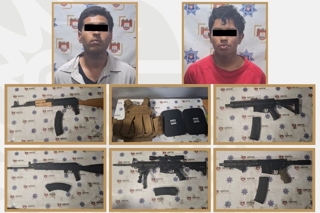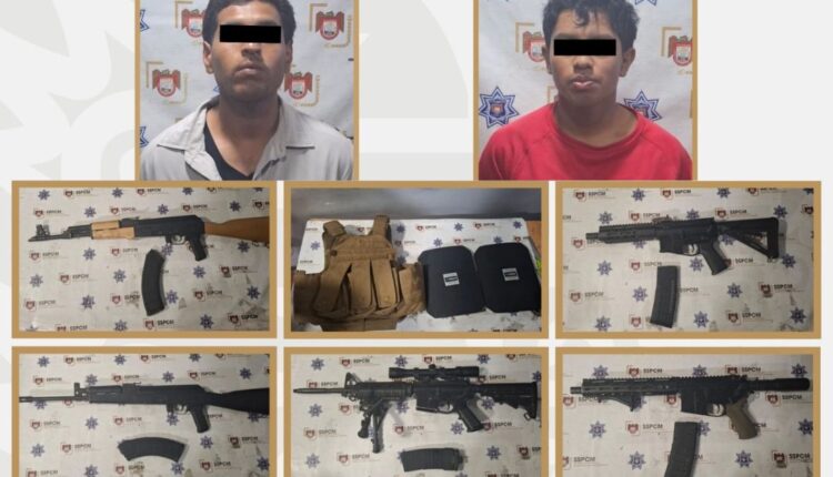 Tijuana, Baja California, 9 de abril de 2026.- Una denuncia ciudadana permitió a la Secretaría de Seguridad y Protección Ciudadana Municipal (SSPCM) y a la Federación capturar a dos presuntos delincuentes en posesión de un arsenal en el fraccionamiento Valle de San Pedro. Los sujetos, que se ocultaban entre casas de la zona, tenían bajo su poder cinco armas de fuego largas y seis chalecos antibalas al momento de su arresto este miércoles.
