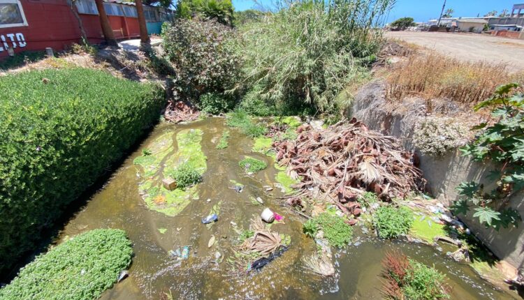 Playas de Rosarito, 20 de junio de 2022.- Todo tipo de basura desde plástico, ramas de palmeras tiradas por los mismos ciudadanos y hasta el fétido olor de un poni muerto, así luce parte del arroyo Huacatay a unos metros del bulevar Benito Juárez.